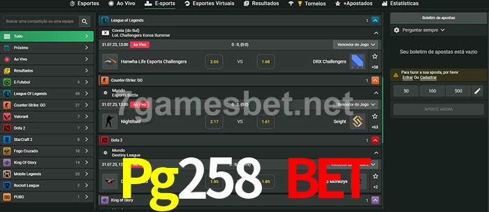 O Pg258 Bet oferece uma grande seleção de opções de apostas em e-sports com probabilidades competitivas